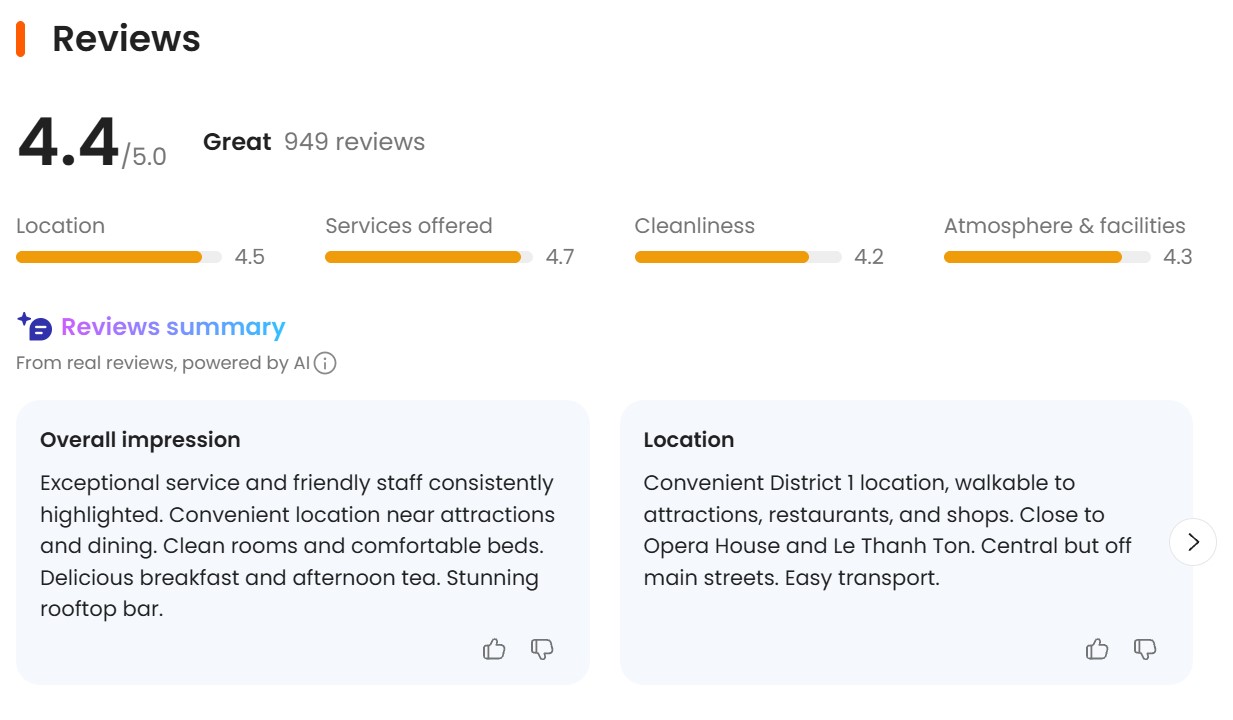 This globetrotter highlighted the hotel’s à la carte breakfast menu as a standout feature. From American-style omelets to classic Eggs Benedict and fresh local dishes, guests love having choices that cater to both Western and Vietnamese palates. Bonus? Afternoon tea is included with day rates—perfect for post-sightseeing relaxation.