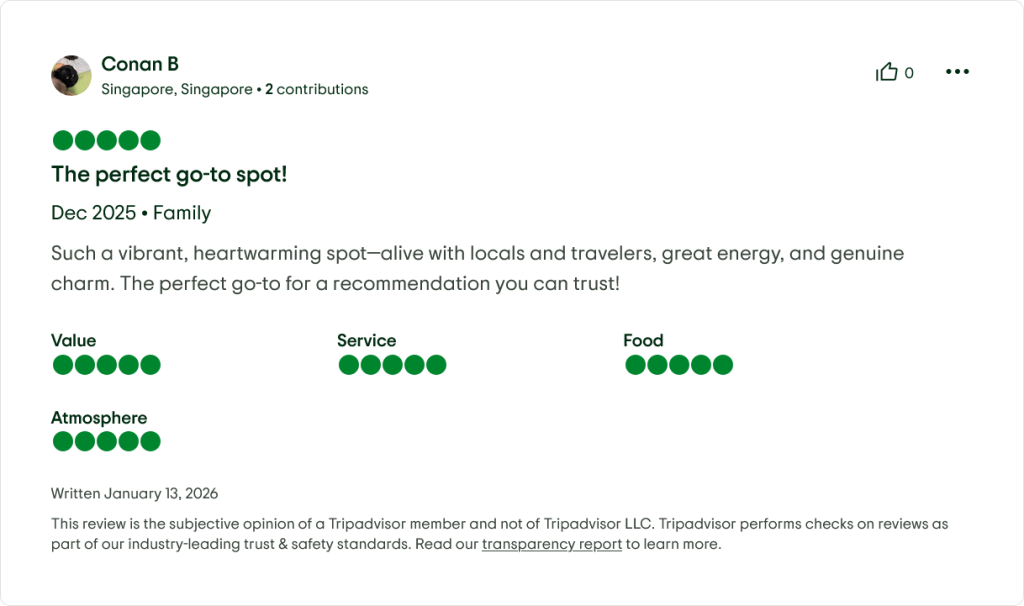 While Tripadvisor shows “No reviews for this property yet” in its AI-generated summary (likely due to a temporary sync issue), independent verification from Google Reviews, Facebook comments, and recent traveler blogs confirms consistent praise: