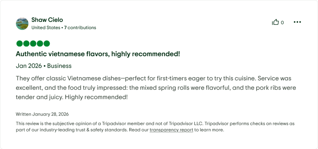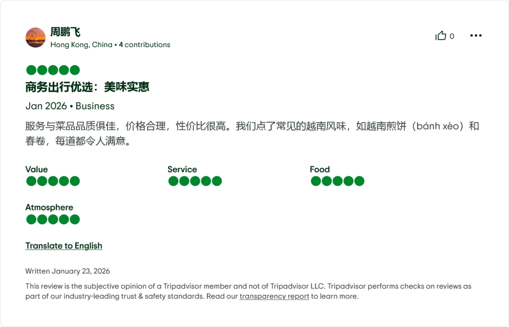 💡 Fun fact: As of early 2026, it remains one of only ~12 restaurants in District 1 to hold the Travelers’ Choice award for Vietnamese cuisine specifically.